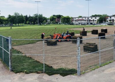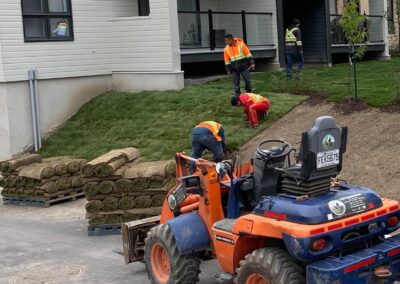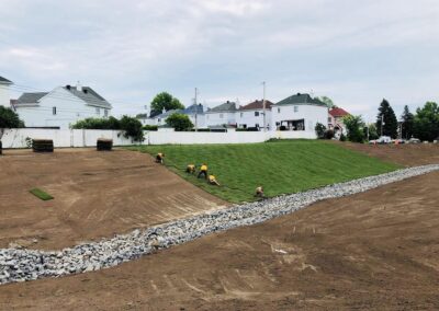 Avant de poser la tourbe, nous nous assurons que le terrain est bien nivelé, drainé et prêt à accueillir la nouvelle pelouse. Cette étape inclut :
